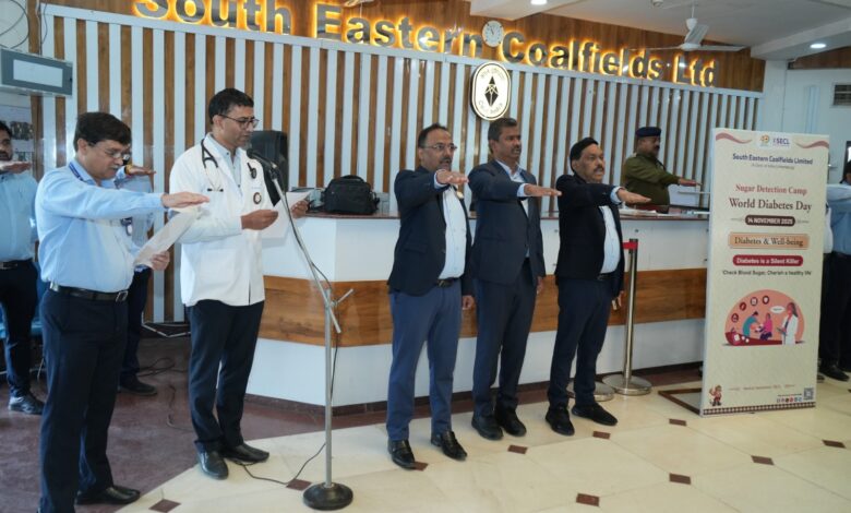 बिलासपुर _विश्व मधुमेह दिवस के  अवसर पर एसईसीएल मुख्यालय में मेडिकल विभाग द्वारा एक व्यापक स्वास्थ्य कार्यक्रम आयोजित किया गया, जिसमें शुगर डिटेक्शन कैंप, जागरूकता सत्र एवं शपथ ग्रहण शामिल थे। इस पहल का उद्देश्य कर्मचारियों में मधुमेह की रोकथाम, समय पर जांच तथा स्वस्थ जीवनशैली को प्रोत्साहित करना था
